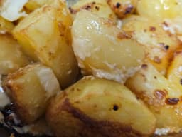 Chunks of potato mixed with cream and French onion soup, roasted until golden brown.