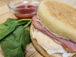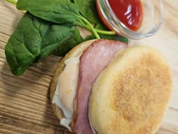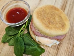 Bacon, English Muffin white (Wheat), Cheese (Milk), Egg