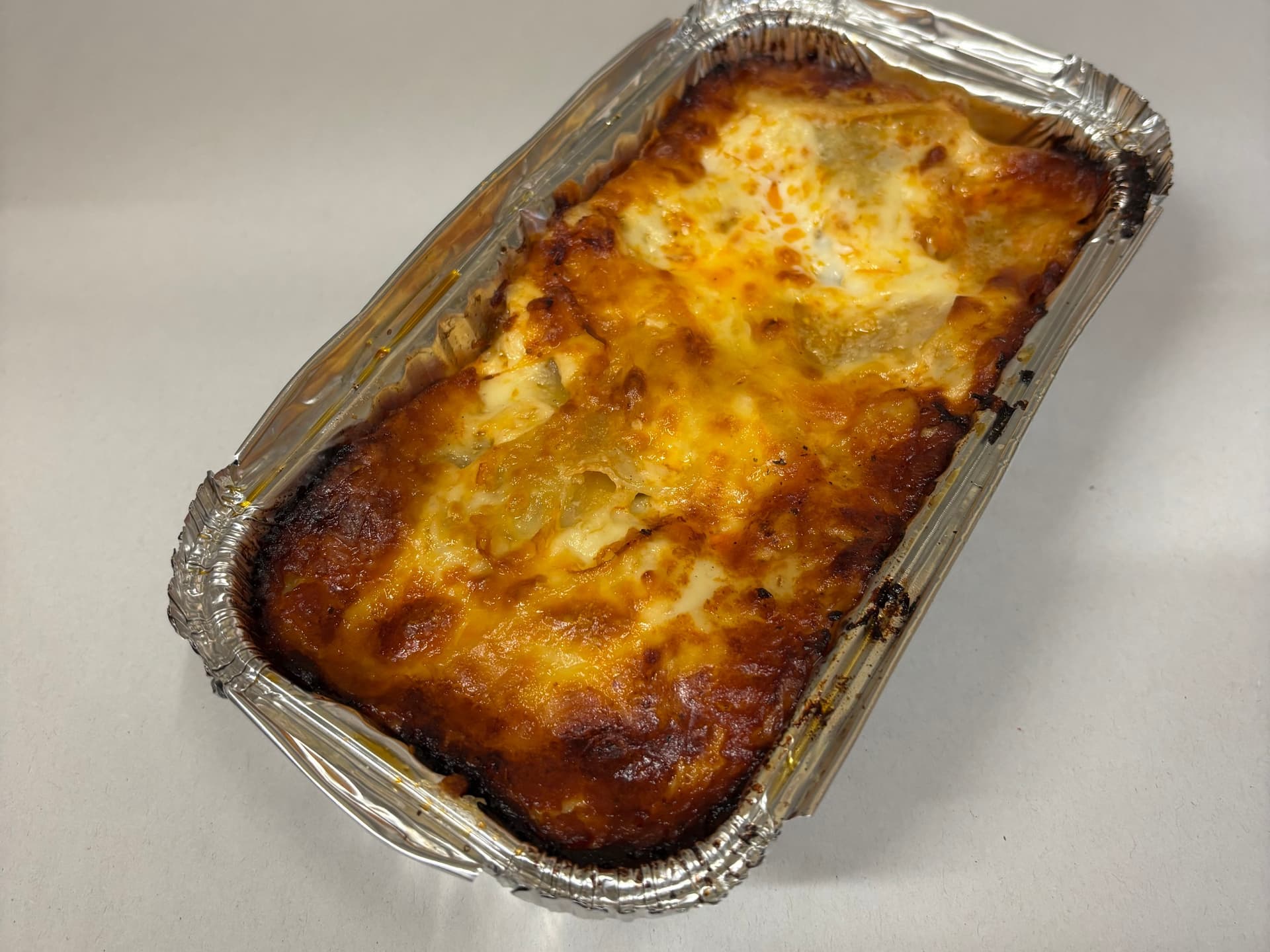 Rich layers of tender pasta, seasoned beef, creamy béchamel, and tangy marinara, all baked under a golden blanket of melted cheese. Classic, comforting, and unapologetically indulgent — just like Nonna made.