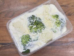 Florets of Cauliflower & Broccoli coated in a creamy three Cheese sauce ready to eat by itself or with a mains.
