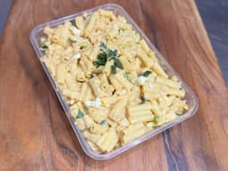 Macaroni pasta (Coles) (Wheat), Bechamel Sauce [Milk (Coles), Water, Flour (GF), Butter (Western Star) (Milk), Parmesan cheese (Coles) (Milk), Salt], Mozarella cheese (florida) (Milk), Thickened cream (Ky Valley) (Milk), Cream cheese (Tatura) (Milk), Spring onions, Chicken booster (GF) Maggi, Sweet paprika