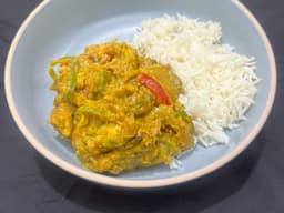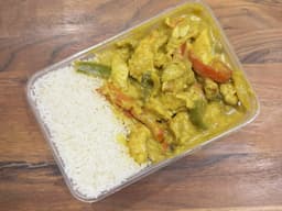 Cooked basmati rice (SunRice), Chicken breast, Hot water, Purple onion, Red capsicum, Green capsicum, Mushrooms, Sweet chilli sauce (Pantai), Peanut butter (Bega), Kecap manis sweet soy sauce (ABC) (Wheat, Sulphites), Soy sauce (Kikkoman) (Wheat), Crushed garlic, Curry powder (Keens)