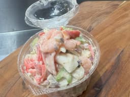 Seafood Lovers. Seafood Extender, Prawns, Celery & Purple Onion tossed in our homemade creamy Mayonnaise. Amazing by itself or add it as a side to any meal.
