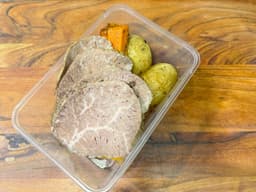 Slices of Tender Roast Beef accompanied by Roast Pumpkin, Carrots & Potato finished with a homemade gravy. A complete Roast for any occasion.