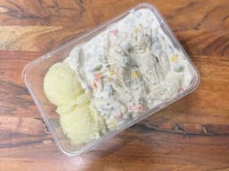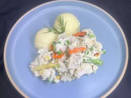 Diced Chicken & Vegetables in a creamy white sauce with a side of Mash to complete the meal.