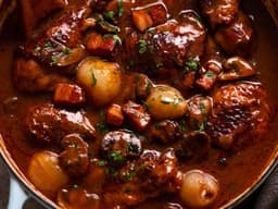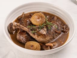 Coq au Vin is a rich and flavorsome French chicken casserole, we add porcini and Madeira to add a complex and earthy profile to this timeless classic. This fantastic combination comes with lardons of high quality pancetta, mushrooms, thyme and plenty of red wine.