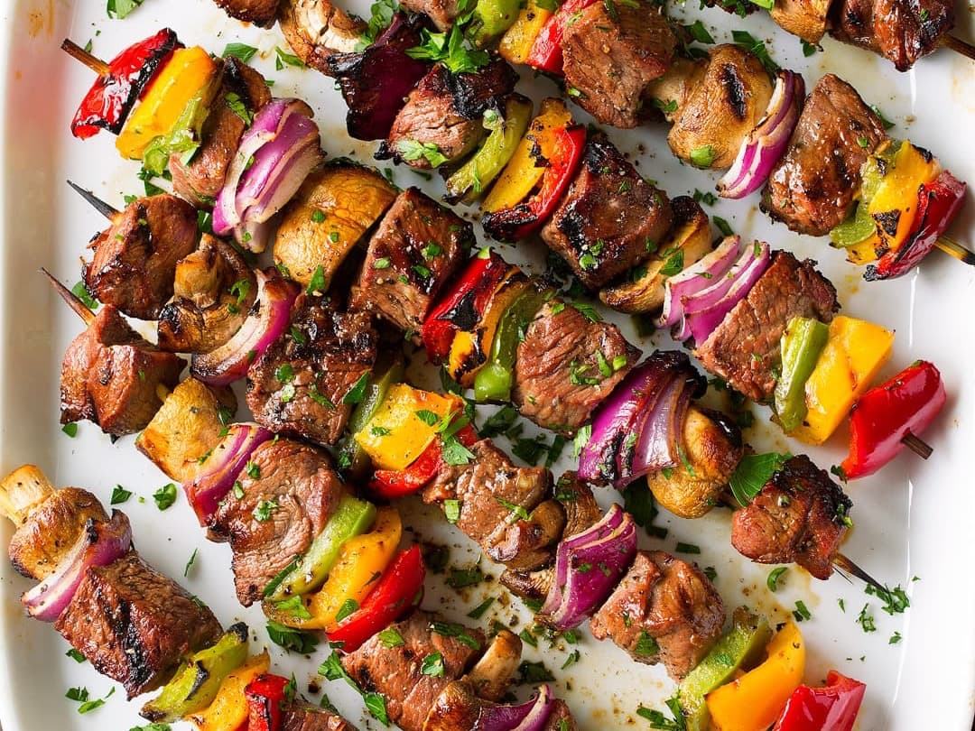 5 x Grilled beef & 5 x Chicken kebabs w/ vegetables & dipping sauces