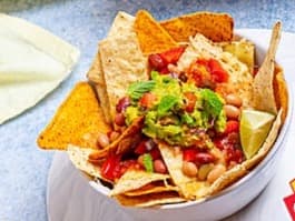 9 x Individual Beef Nacho cups w/ American liquid cheese, sour cream, guacamole & fresh tomato salsa