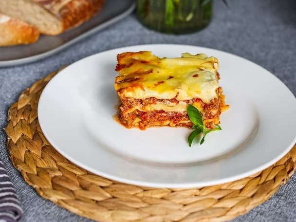Layers of Italian egg pasta, slow braised beef bolognaise, house-made tomato sugo, bechamel and mozzarella cheese. Note that the serving size is a generous 500g per serve.