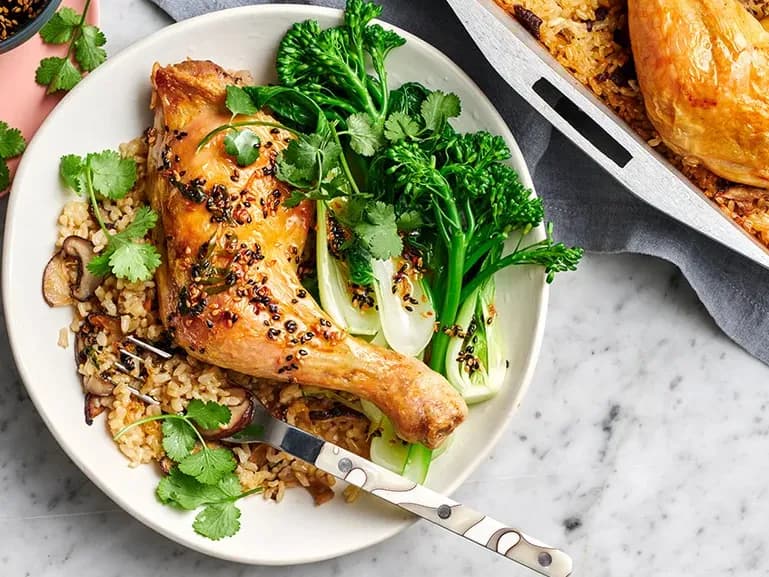 Oven-baked chicken served over fragrant rice, finished with a vibrant chilli and ginger dressing. The dressing brings just the right amount of heat and zing, cutting through the richness of the chicken for a perfectly balanced, nourishing meal.