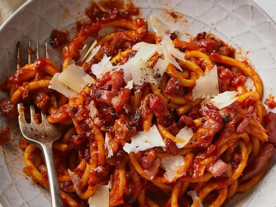 Amatriciana is a Roman classic that celebrates simplicity at its finest; slow-cooked tomato sauce enriched with smoky pancetta, onion, and a gentle kick of chilli. The flavours speak for themselves: rich, savoury, and just the right balance of heat and sweetness. It’s hearty, homely, and made fresh in our kitchen, ready to bring a little Italian warmth to your table.