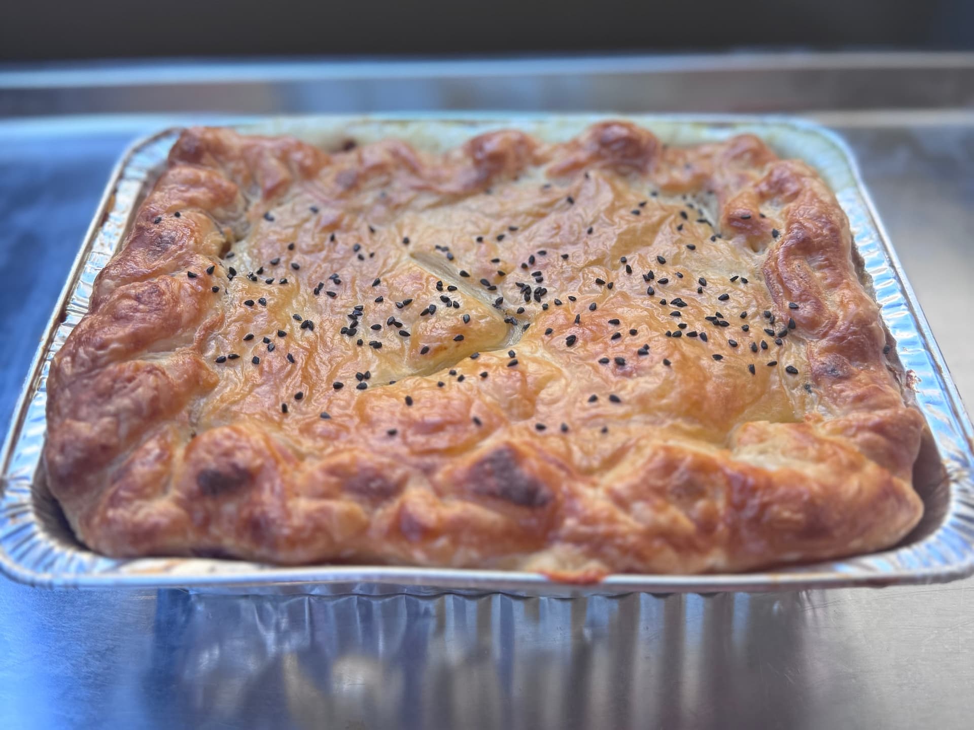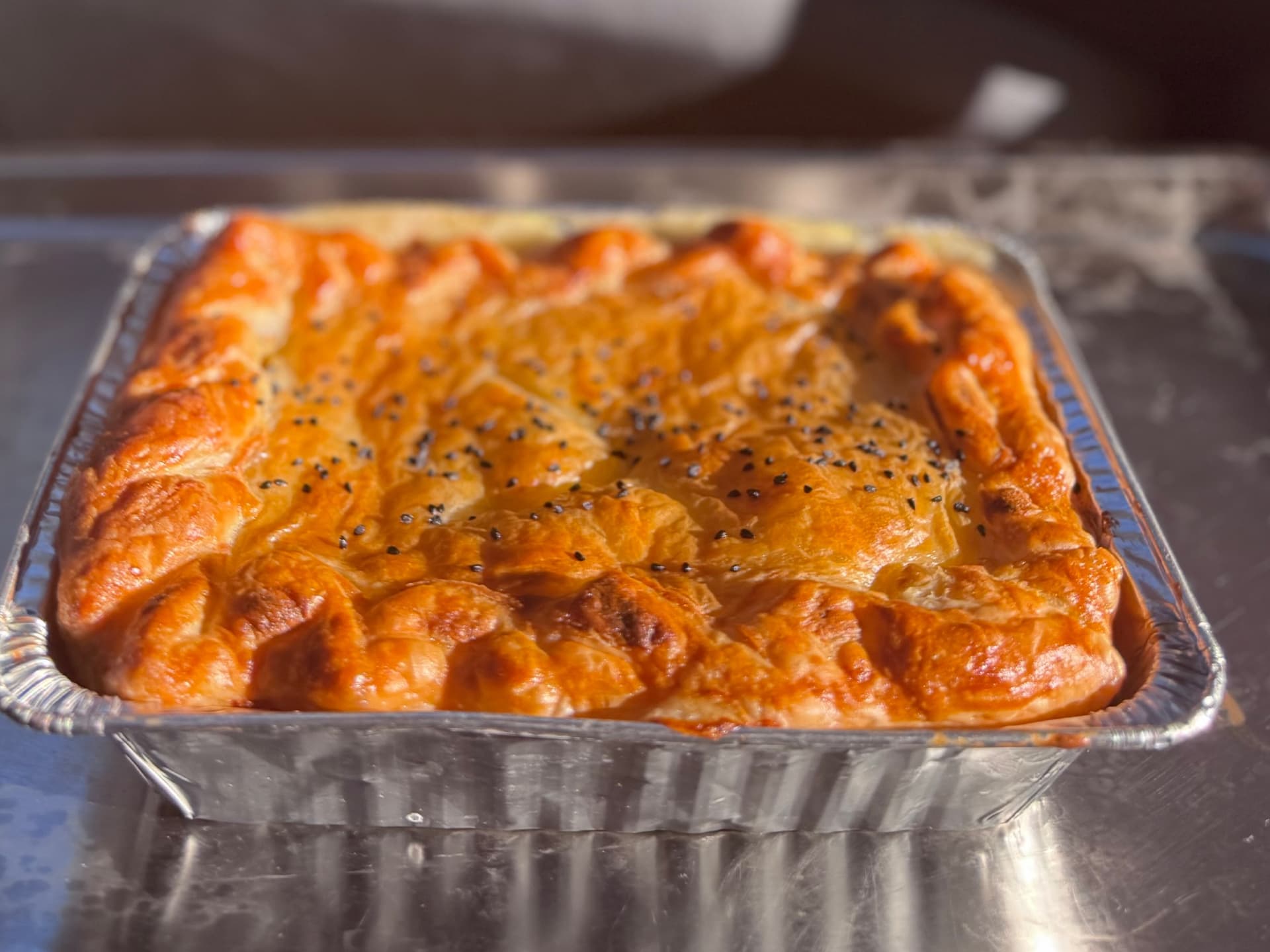 Big, bold, and packed with flavour. This slow-cooked beauty is loaded with tender beef, pancetta, rich Guinness gravy, and a hit of caramelised onions, all tucked under a golden, flaky pastry lid. It’s deep, hearty, and just the right amount of indulgent - perfect for a chilly night with a side of buttery mash or crispy chips. Grab a fork and dig in!