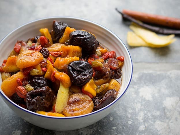 Our Dried Fruit Compote is a a warm, fragrant blend of dried apricots, pears, and prunes gently poached in verjus with honey, cinnamon, vanilla, and cloves. Richly spiced and naturally sweet – perfect served warm or chilled, with yoghurt, ice cream, or alongside cheese.