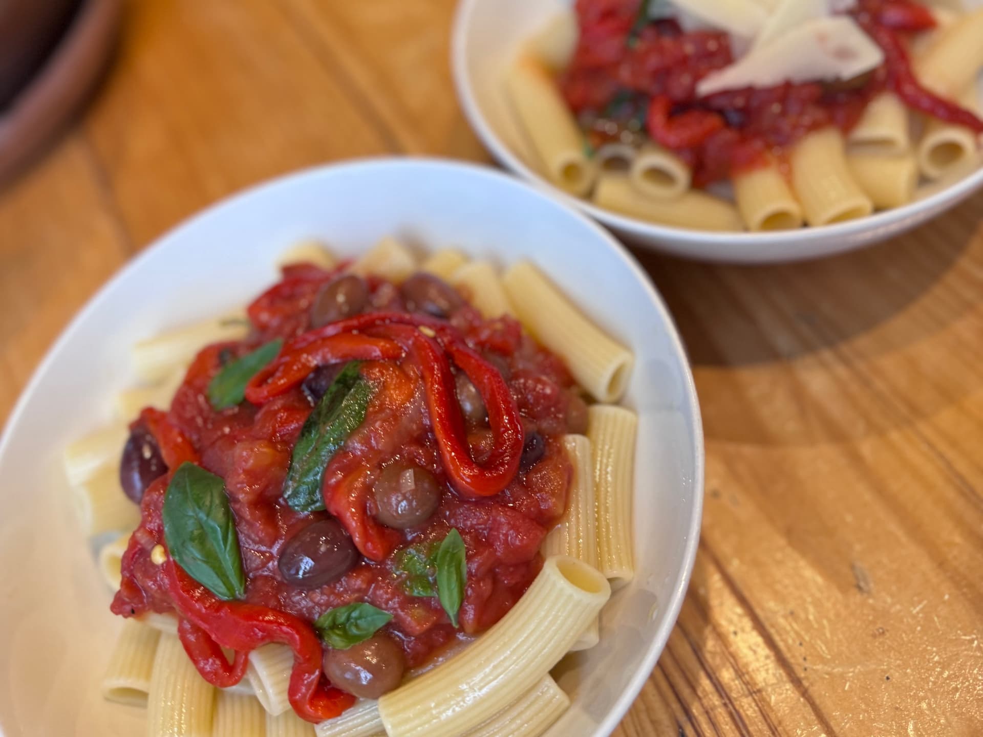 A Mediterranean-inspired pasta sauce featuring ripe tomato sugo, sweet roasted capsicum, fragrant fresh basil, and Ligurian olives. This rich, aromatic sauce is simmered with garlic and herbs, offering a perfect balance of savory, smoky, and herbal flavors to elevate any pasta dish - FROZEN