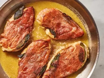 Tender chicken breasts are brined with fragrant herbs, lemon and honey for exceptional flavour and juiciness, then wrapped in delicate prosciutto and sage. Pan-seared to golden perfection and finished with a buttery Marsala wine sauce, this Italian classic delivers rich, savoury depth with every bite. Elegant, comforting and full of character, it’s a dish that truly lives up to its name: “to jump in the mouth.”