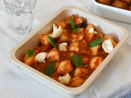 Gnocchi [Potato, Flour (Wheat), Egg Yoke, Parmesan (Milk), Salt, Nutmeg], Napoli Sauce [Crushed tomatoes, Onion, Basil, Salt, Extra Virgin Olive Oil], Bocconcini (Milk), Basil