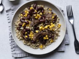 Organic brown rice, Organic Pulled Beef [Beef chuck, BBQ sauce, Organic beef broth], Organic corn, Organic kidney beans, Olive oil, Organic spices, Salt