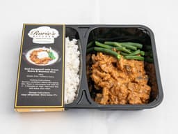 Rich, tangy and creamy. This favourite is a go-to meal for many. Tender beef strips, juicy mushrooms slow slow-cooked in a creamy tomato sauce.