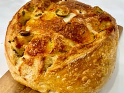 A flavourful twist on traditional sourdough. This loaf is infused with chorizo sausage, spicy jalapeño and cheddar cheese. Ideal for paring with soups, accompanying a cheese & meat platter, toasted sandwich or just lathered in butter and eaten fresh.