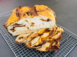 Every Aussie kid and adult will love this vegemite and cheese sourdough loaf. Best enjoyed fresh lathered with butter and equally as yummy toasted for breakfast or surprise the kids and share as an after-school snack.