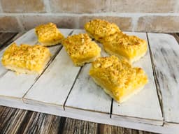 This Lemon and Coconut Streusel Slice will be a huge hit anytime you want to treat yourself to something sweet and tangy in a buttery crumble slice.