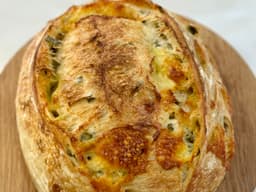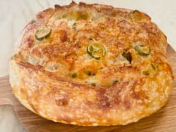 A flavourful twist on traditional sourdough. This loaf is infused with spicy pickled jalapeños and cheddar cheese. Ideal for paring with soups, accompanying a cheese & meat platter, toasted sandwich or just lathered in butter and eaten fresh.
