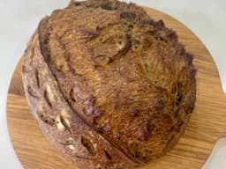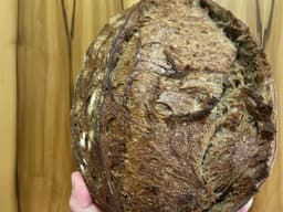 This rustic rye sourdough loaf combines the rich, earthy flavours of rye flour with the tangy complexity of a sourdough starter. A slow fermentation process contributes to its unique taste and dense, chewy texture. Due to the high amount of rye flour, this loaf is also rich in nutrients, fiber and better on gut health, making it a healthier choice compared to many other bread varieties.