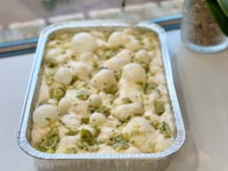 Best eaten fresh on day its bought or you can refresh by pre-heating oven 170 degrees and place in oven and cover top with foil for 5-10mins. Suitable to freeze.
