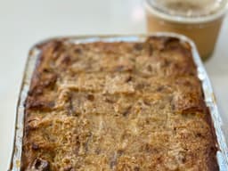 This Apple Pie Sourdough Bread Pudding is the ultimate comfort dessert, made from the same dough as my Apple & Cinnamon Hot Cross Buns but baked into a Sandwich loaf. The bread is soaked in a creamy custard and laced with a homemade apple pie filling. Baked to perfection, it's soft, warming and packed with cozy flavours - preservative free and gut friendly. Comes with a Butterscotch sauce to drizzle over. Serve with a scoop of ice cream or custard, perfect for any occasion.