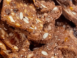 Cranberries, Sourdough Starter (Wheat), Milk, Pumpkin, Plain Flour (Wheat), Whole Wheat Flour, Oats, Dried Figs, Sunflower Seeds, Almonds Flaked, Brown Sugar, Apricots, Pepita Seeds, Baking Powder, Cinnamon, Thyme, Nutmeg, Pistachios, Ginger