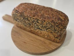 The combination of roasted sunflower seeds and umami-rich sesame, a bold blend of spelt, rye and whole grains comes together with a touch of honey which gives the loaf a nutty taste despite no nuts being added. This loaf is a bit denser and heavier due to the higher percentage of spelt and rye flours added. Spelt has a lovely mild, sweet and nutty flavour, low in gluten and easier to digest than wheat. A great bread choice if you are gluten intolerant. Packed with fibre, essential minerals, and slow releasing energy, this loaf is as nourishing as is delicious. Fermented slowly for better digestion and enhanced flavour.This bread is delicious as an all-rounder, every day for sandwiches, toast or toasties. Made in a sandwich tin for a softer loaf that's easier to cut.