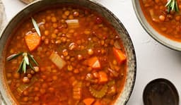 Celery, Garlic, Vegetable stock, White Vinegar, Lentils, Onion, Carrot, Tomato, Rosemary, Oregano