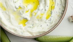 One of the most popular Greek dips with a delicious combination of cucumber and herbs with garlic, lemon and yoghurt.