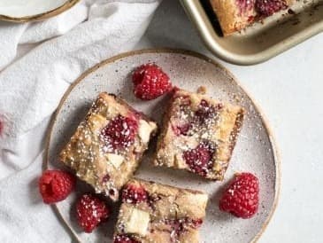 A delicious sweet treat made with white chocolate, raspberries and pistachio
