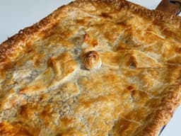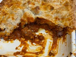 Beef, Water, Red wine, Puff pastry (Wheat, Milk), Onion, Tomato paste, Extra virgin olive oil, Flour (Wheat), Worcestershire sauce (Wheat, Fish), Egg, Beef stock Massel(GF), Garlic, Bay leaves