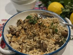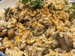 Water, Mushrooms, Sourdough roll (Wheat), Basmati rice, Onion, Extra virgin olive oil, Unsalted butter (Milk), Vegetable stock, Lemon, Wattle seed (Peanut), Parmesan (Milk), Mixed dried herbs, Garlic