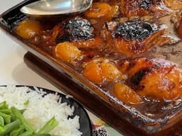 Chicken, Canned apricot, Sugar, light brown, Soy sauce (Wheat), Tomato sauce (low sodium), White wine, Cornflour (GF), Garlic, Mixed dried herbs