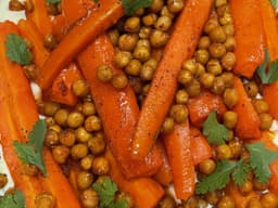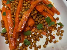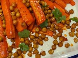 Spicy Maple Roasted Carrots with Crispy Chickpeas & yoghurt Sauce