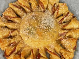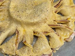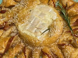 Puff pastry (Wheat, Milk), Prosciutto, Camembert (Milk), Mustard (Milk), Egg, Garlic, Rosemary, Sesame seed