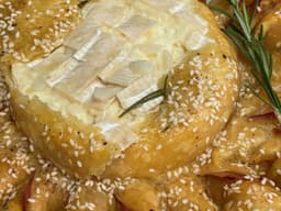 Indulge in our irresistible appetizer! Enjoy warm, gooey camembert paired with garlic, rosemary, mustard, and prosciutto, all wrapped in golden crisp puff pastry. It's delivered ready for you to cook and savour.