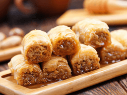Baklava Syrup [Sugar, Water, Whole cloves], Walnuts, Butter (Milk), Phyllo pastry, Panko crumbs (Wheat), Sugar, Whole cloves, Cinnamon, Ground cloves