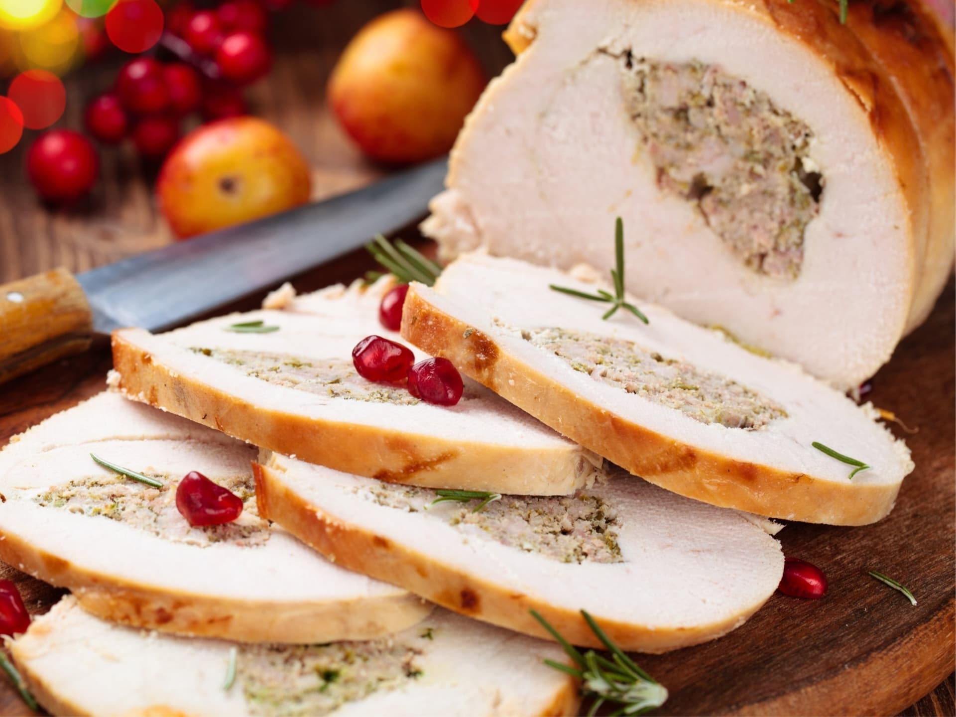 Christmas doesn't need to be tasteless if you're on a Low FODMAP diet. A beautiful herb & macadamia nut stuffed turkey breast wrapped in pancetta and baked to perfection. Served with all of the roasted vegetables you'd expect on your festive dinner plate, a home-style cranberry relish and a beautifully reduced roast meat gravy.